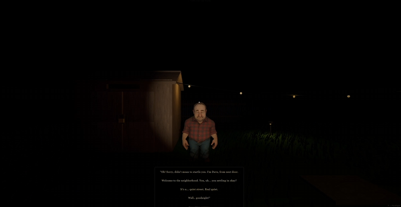 Night 1 — Your neighbor Dave introduces himself in the dark. A knock on the door after midnight. Nobody's there.