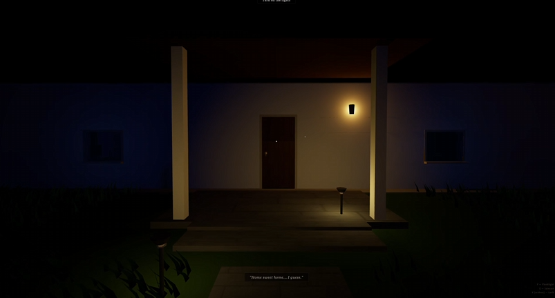 You're Mark. Recently divorced. You just moved into a suspiciously cheap house in a quiet suburban neighborhood. You work late and come home after dark every night. Heat up dinner. Take out the trash. Shower. Go to bed. Normal stuff.